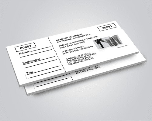 Produzidas em papel de qualidade, com impressão em alta definição, permitem personalização com logotipo, prêmios, informações do evento e datas. As folhas contam com serrilha para destacar facilmente as vias, tornando o uso prático e eficiente em qualquer campanha.